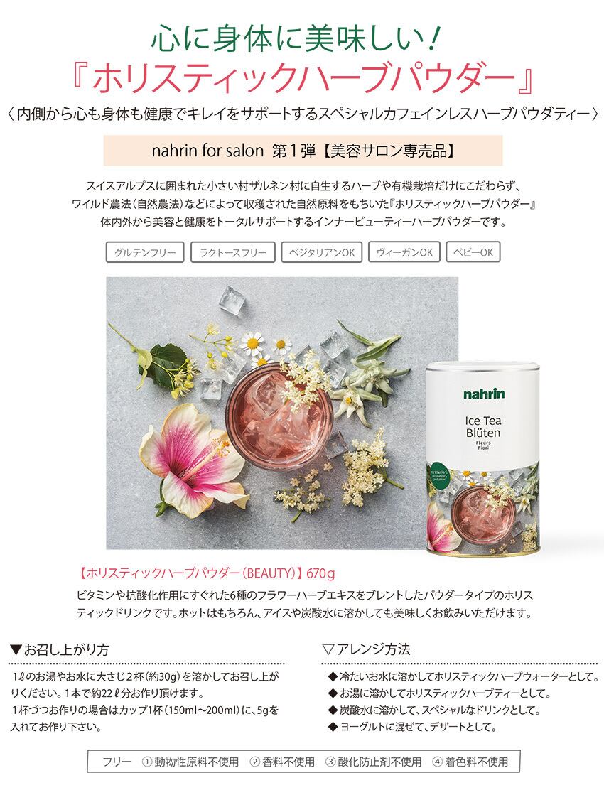 スイスアルプスに囲まれた小さい村ザルネン村に自生するハーブや有機栽培だけにこだわらず、ワイルド農法(自然農法)などによって収穫された自然原料を用いたハーブパウダーです。